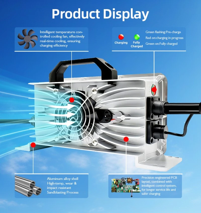 СТАРВЕЛЛ фабрички 1,2кВ ОБЦ пуњач батерија (детаљи о моделу: 90–260В АЦ улаз, 48В ДЦ излаз на 25А, називна снага 1,2кВ) пружа стабилно пуњење високих перформанси за возила, бродску опрему и индустријске мобилне уређаје. Његово издржљиво кућиште од легуре алуминијума обезбеђује ефикасно расипање топлоте и дуготрајну издржљивост, што га чини идеалним за оштра окружења у возилу.