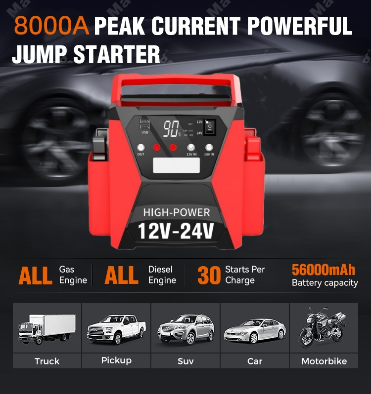 Прва истакнута продајна тачка је његова неупоредива почетна снага. Са вршном струјом од 8000А и тренутном стартном струјом од 4000А, може да покрене потпуно празну батерију за 3 секунде, чак и на екстремним температурама у распону од -20℃ до 60℃, и подржава до 200 скокова са једним пуним пуњењем — што је далеко изнад индустријских просека. Ово осигурава да се никада не заглавите, било на свакодневним путовањима или дугим путовањима.