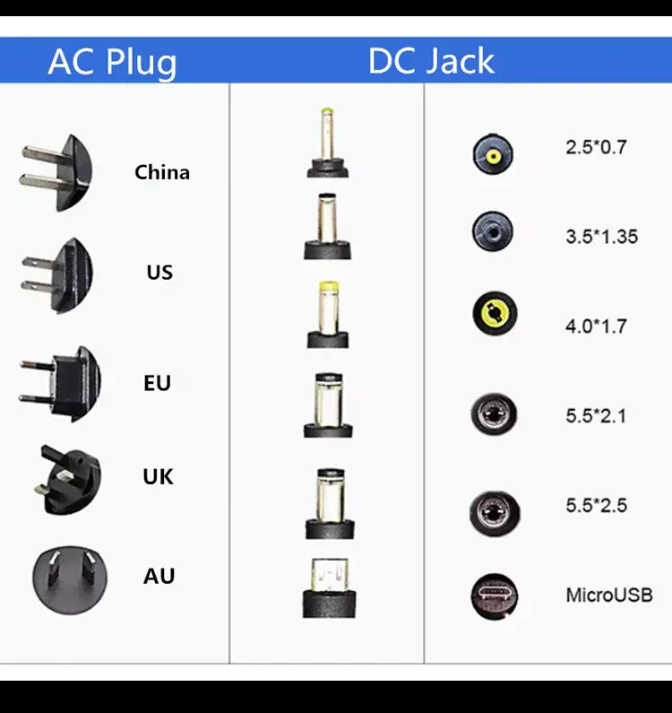 Тип конектора: Стандардни ДЦ конектор (уобичајене величине укључују 5,5 мм × 2,1 мм или 5,5 мм × 2,5 мм, прилагодљиве на основу захтева уређаја).