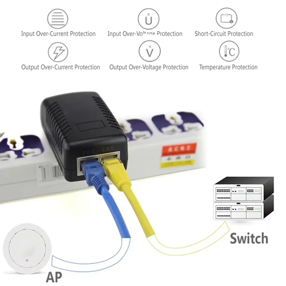 Савршено за напајање бежичних приступних тачака (АП) у канцеларијама, хотелима и домовима где зидна инсталација штеди простор.