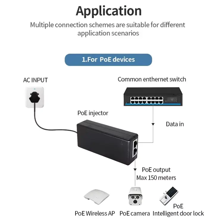 Овај 24В 1А Гигабитни пасивни ПОЕ ињектор се широко користи у: