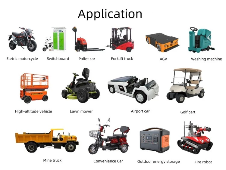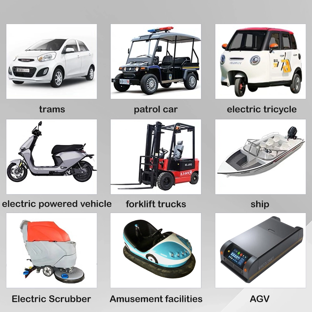 Апликације производа Електрични одбојници и забавне вожње Возила за разгледање и колица за голф Патролна возила и сигурносна кола Виљушкари и опрема за руковање материјалом Машине за прање и чишћење подова Аутоматизована вођена возила (АГВ) за складишта Електрични бродови, чамци и поморски бродови