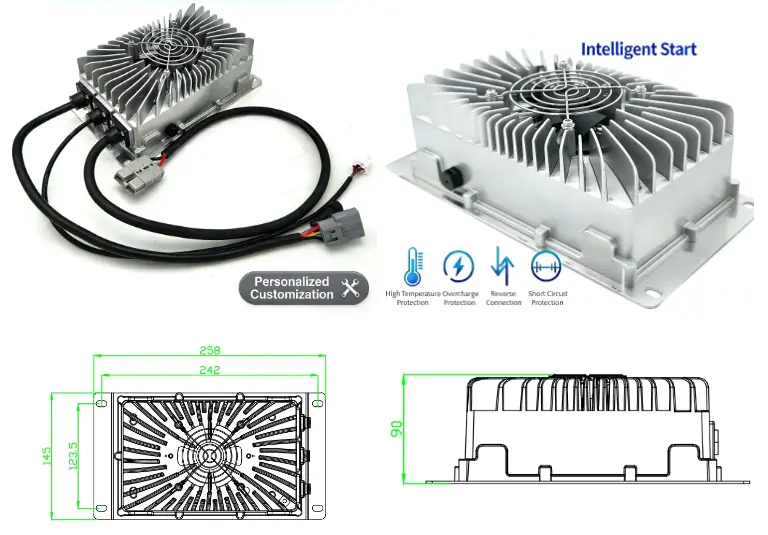 · Модели са више напона: Доступни у 24В (15А), 36В (10А), 48В (8А), 60В (6А) и 72В (5А) за различите ЕВ системе.
