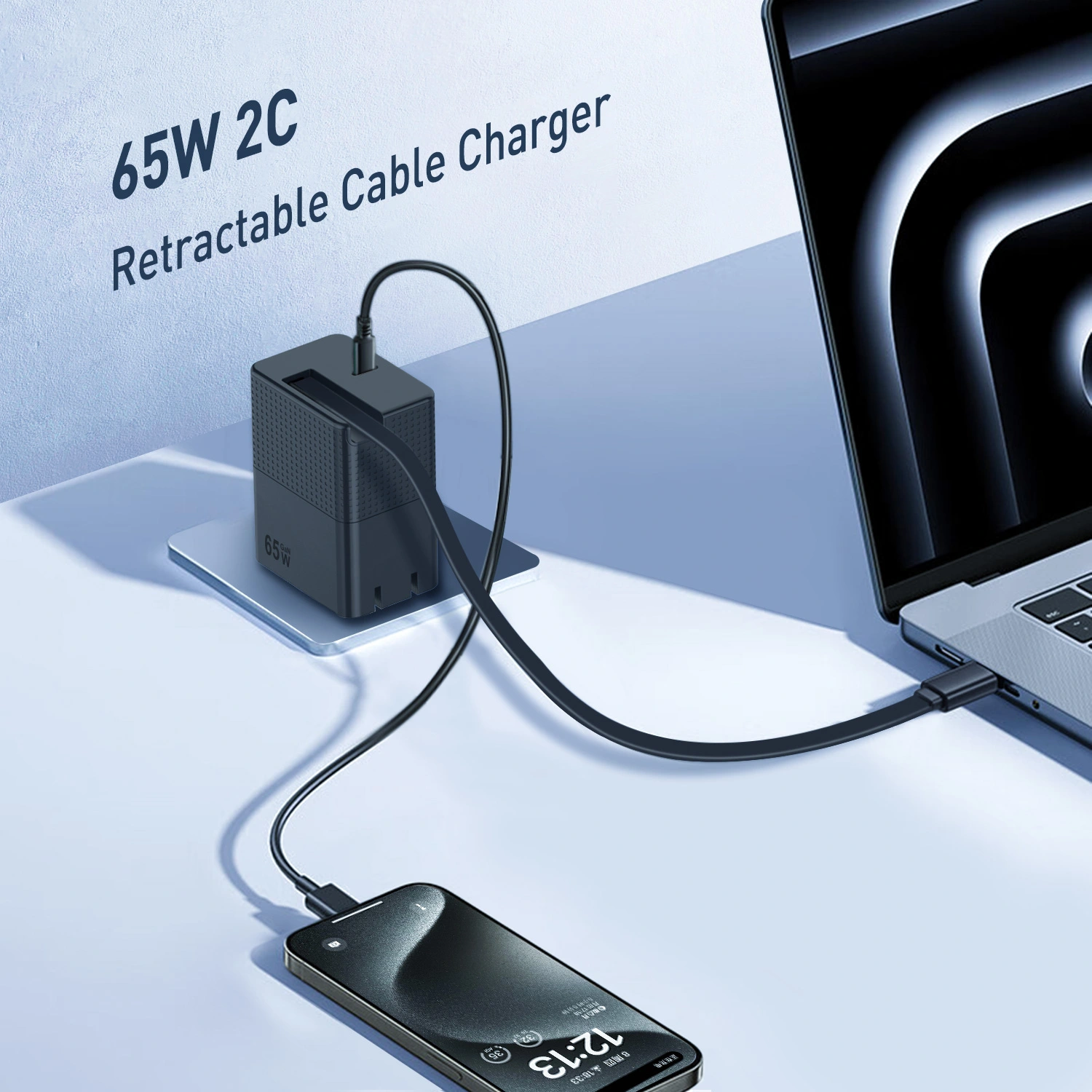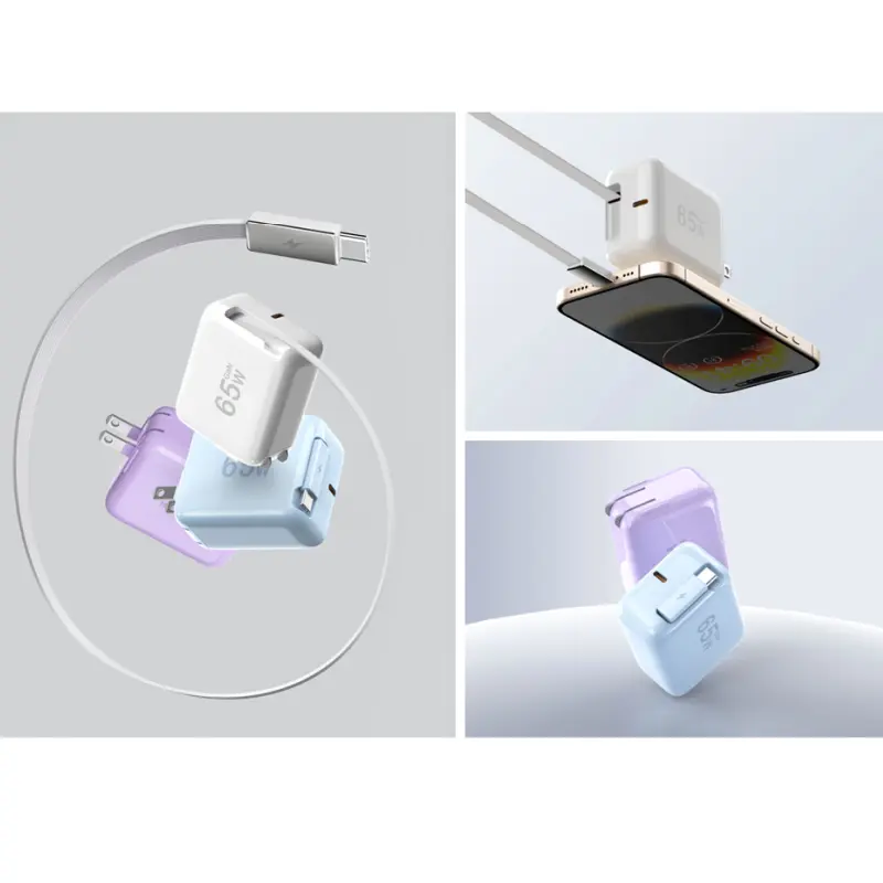 Опремљен кабловима који се увлаче: Адаптер за брзо пуњење од 65 В опремљен је практичним УСБ-Ц каблом за пренос података дужине 2,3 стопе (1 метар) који се не запетља. Овај кабл може глатко да се продужи и увуче, чиме се избегава гужва са запетљаним кабловима и осигурава да можете да пуните у било ком тренутку.
