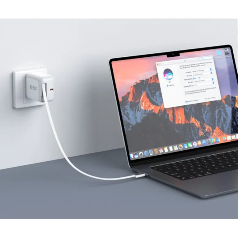 Брза испорука снаге од 65 В: Омогућава брзо пуњење за лаптопове, таблете и паметне телефоне са напредном технологијом ПД 3.0, пуњење МацБоок Про-а до 50% за само 45 минута.