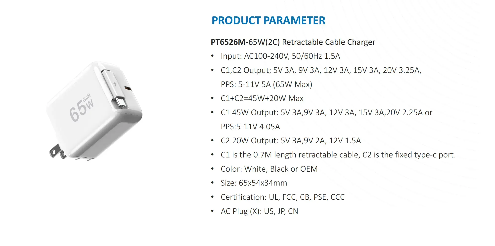 Вишеструка сигурносна заштита: СТАРВЕЛЛ-ов 65В ПД адаптер за зид са каблом који се може увлачити има функције заштите од прекомерне струје, пренапона, прегревања и кратког споја, обезбеђујући безбедан и поуздан процес пуњења.