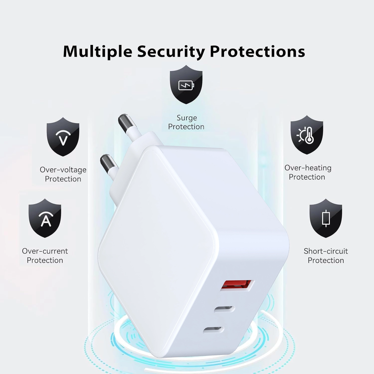 Паметно пуњење са више портова – Опремљен са два УСБ-Ц и УСБ-А порта, омогућава вам да пуните више уређаја истовремено без утицаја на брзину.