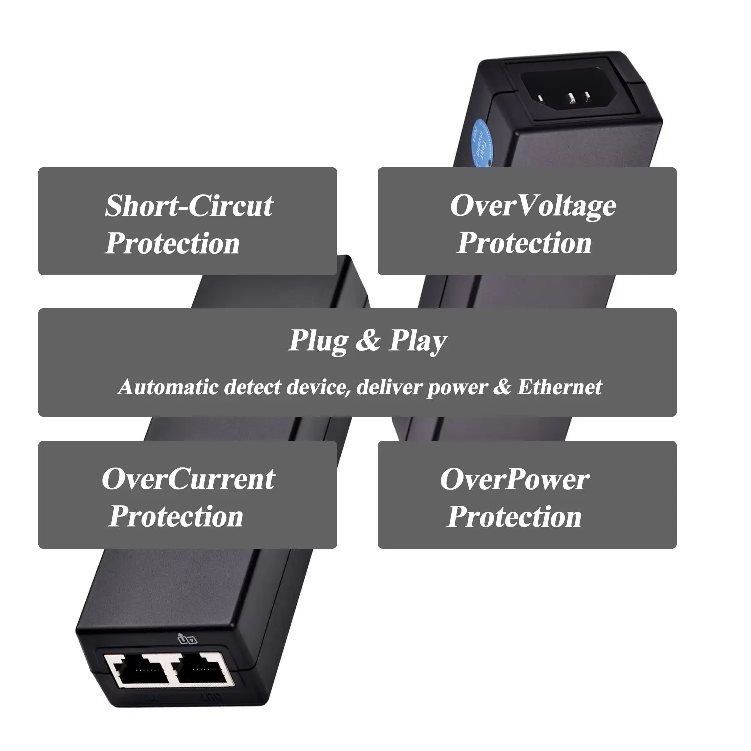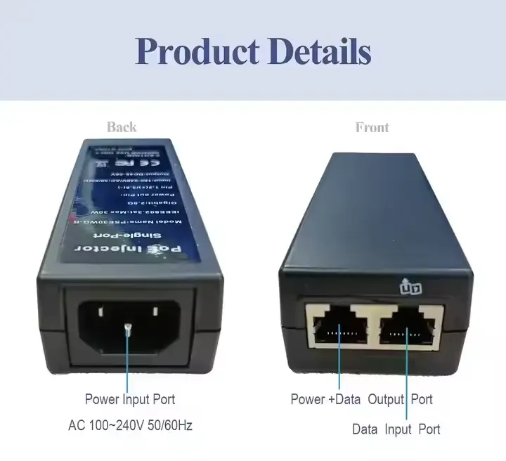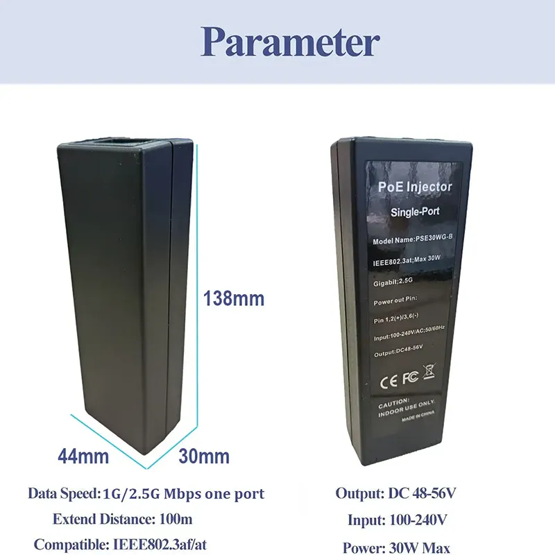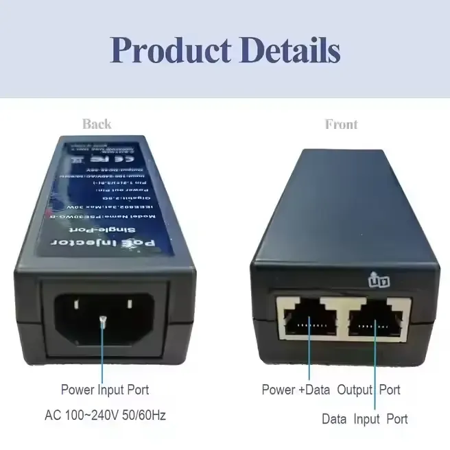 Као професионални произвођач напајања у Кини, Старвелл представља свој 802.3афат 48В 30В 1000Мбпс Гигабит Етхернет ПоЕ ињектор. Овај уређај подржава 10/100/1000Мбпс/2.5Г аутоматско преговарање и има више заштитних кола од прекомерне струје, пренапона и кратких спојева. Са опсегом радне температуре од -20°Ц до 50°Ц, погодан је за различите мрежне уређаје као што су ИП камере, бежичне приступне тачке и ВоИП телефони. Производ је добио сертификате укључујући ЦЕ, ФЦЦ и РоХС и долази са 3-годишњом гаранцијом.