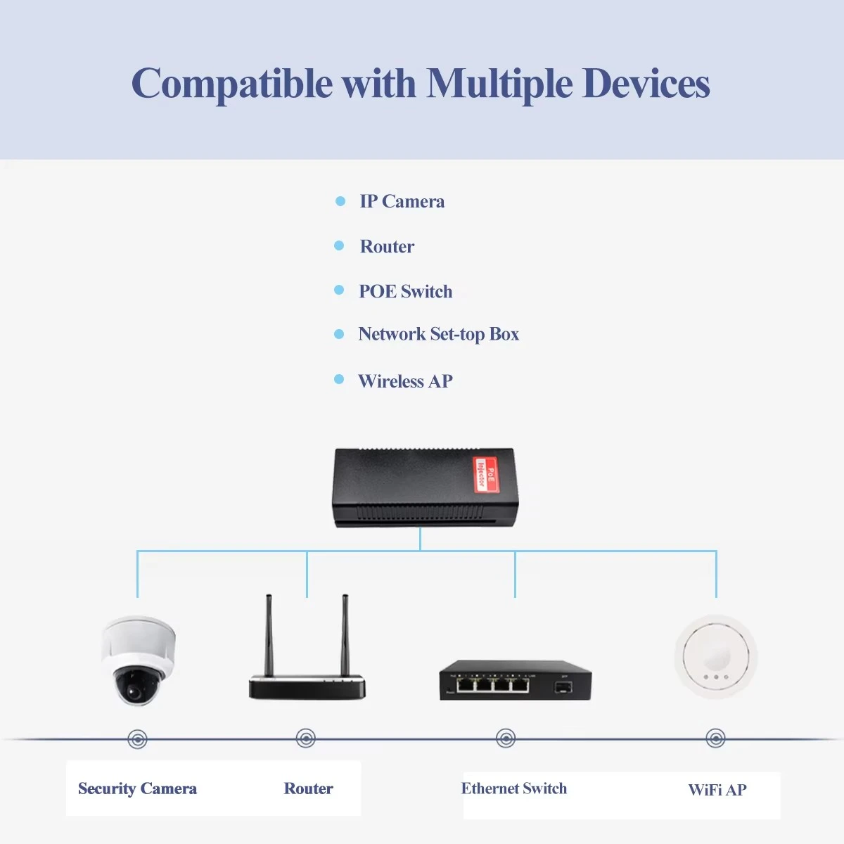 Снабдева даљинско напајање уређајима као што су бежичне приступне тачке, ПТЗ ИП камере и видео телефони