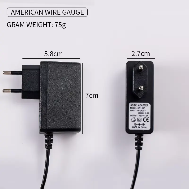 Истакнуте карактеристике: Старвелл висококвалитетни ЕУ адаптер за монтажу на зид нуди поуздане перформансе са излазним опцијама од 12В1А и 12В1.5А, погодним за тржишта ЕУ и Америке.
