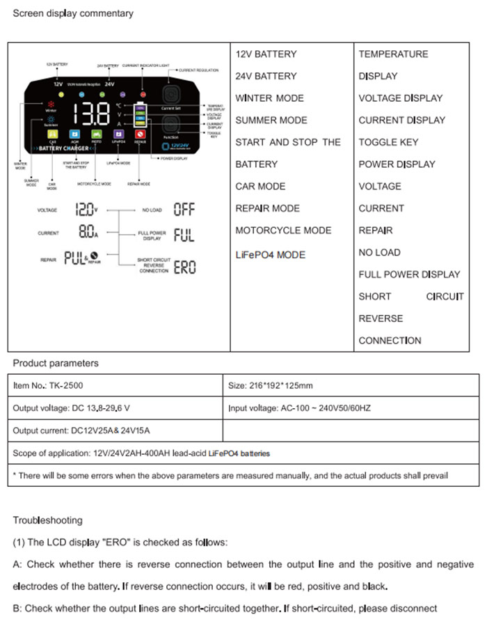 Интерфејс прилагођен кориснику: Јасан, светао ЛЕД екран интуитивно указује на статус пуњења, здравље батерије и све потенцијалне грешке, дајући вам потпуну контролу.