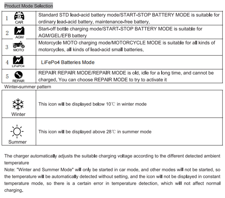 Широка подршка за типове батерија: Компатибилна са различитим хемијским саставима батерија, укључујући стандардне поплављене (мокре), АГМ (упијајуће стаклене простирке), гел и калцијум батерије, обезбеђујући оптимално пуњење за сваки одређени тип.
