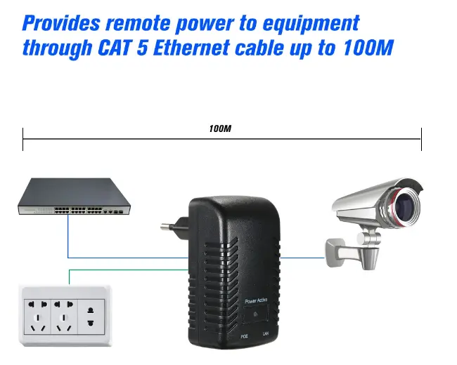 Дизајниран у складу са 48В ИЕЕЕ 802.3аф стандардом, овај нестандардни етернет адаптер за монтирање на зид пружа стабилну излазну снагу од 15В, у потпуности подржавајући већину ИП камера са ПОЕ напајањем, које обично захтевају 15-25В (искључујући ПТЗ моделе велике снаге). Такође ради поуздано са ИП телефонима и другим уређајима усклађеним са 802.3аф или 802.3ат ПОЕ стандардима, нудећи широку компатибилност изван подешавања надзора. Направљен за стабилан дуготрајан рад, Валл Плуг ПОЕ ињектор спаја напајање и пренос података преко једног Етхернет кабла, смањујући време инсталације и материјалне трошкове за стамбене, комерцијалне и безбедносне мрежне пројекте.